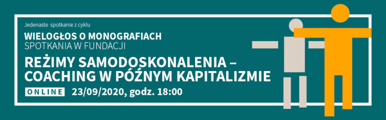 Uprzejmie informujemy, że spotkanie z cyklu WIELOGŁOS O MONOGRAFIACH FNP pod hasłem ?Reżimy samodoskonalenia ? coaching w późnym kapitalizmie?, odbędzie się w formie online 23 września br. o godz. 18.00.Pretekstem do spotkania będzie książka wydana w serii MONOGRAFIE FNP autorstwa Michała Mokrzana...